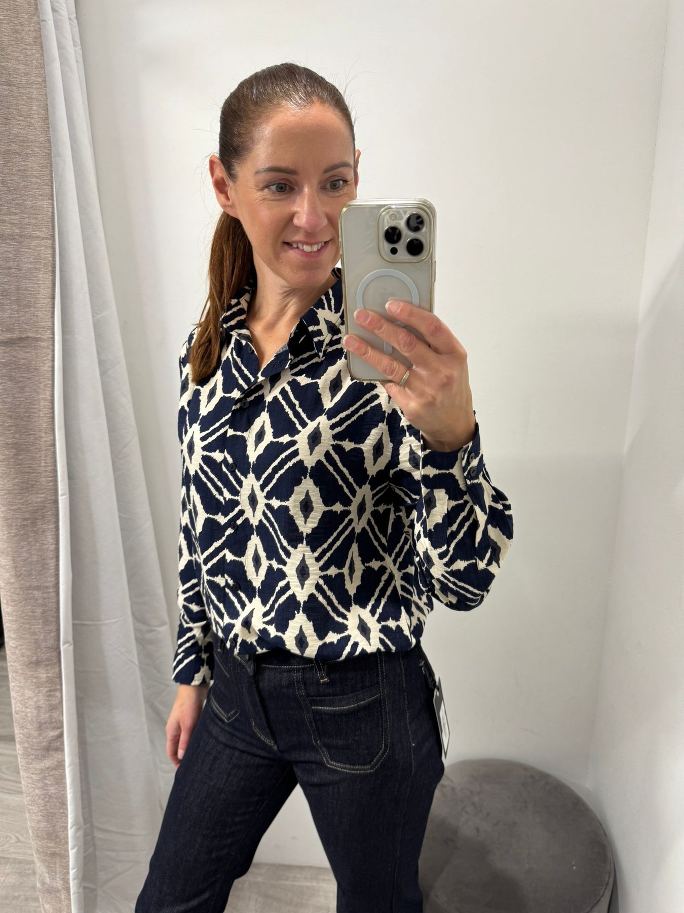 Add a touch of sophistication to your wardrobe with the Ikaia Shirt from BYoung, a premium branded piece that effortlessly combines style and elegance. Featuring a gorgeous all-over print in navy, charcoal, and cream, this shirt is a versatile addition to any collection.