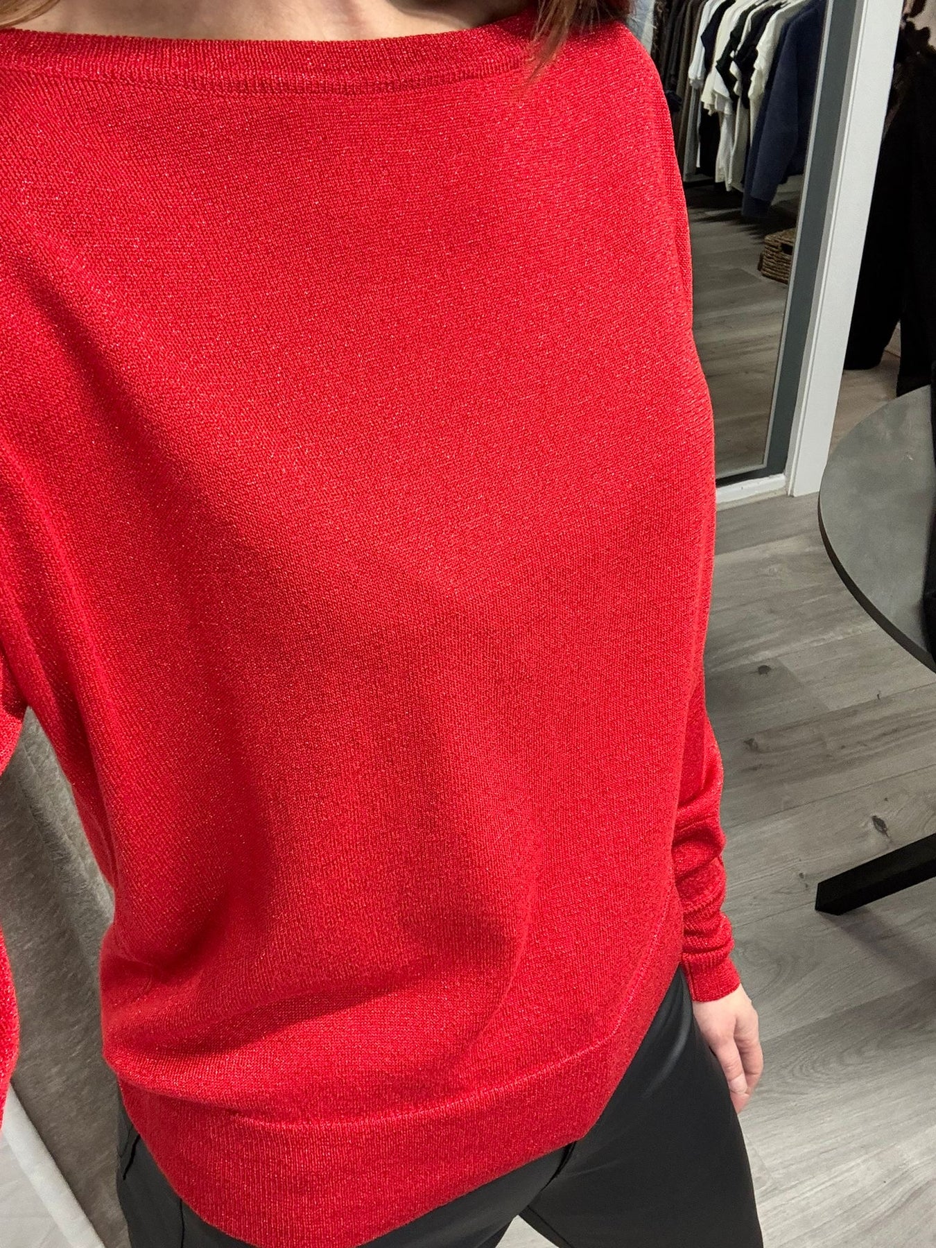 The Mobbe Boatneck Jumper from premium brand BYoung is a winter must-have. Crafted in gorgeous bold red with subtle sparkle from metallic yarn running through the fabric, this jumper adds a touch of glamour to everyday styling.