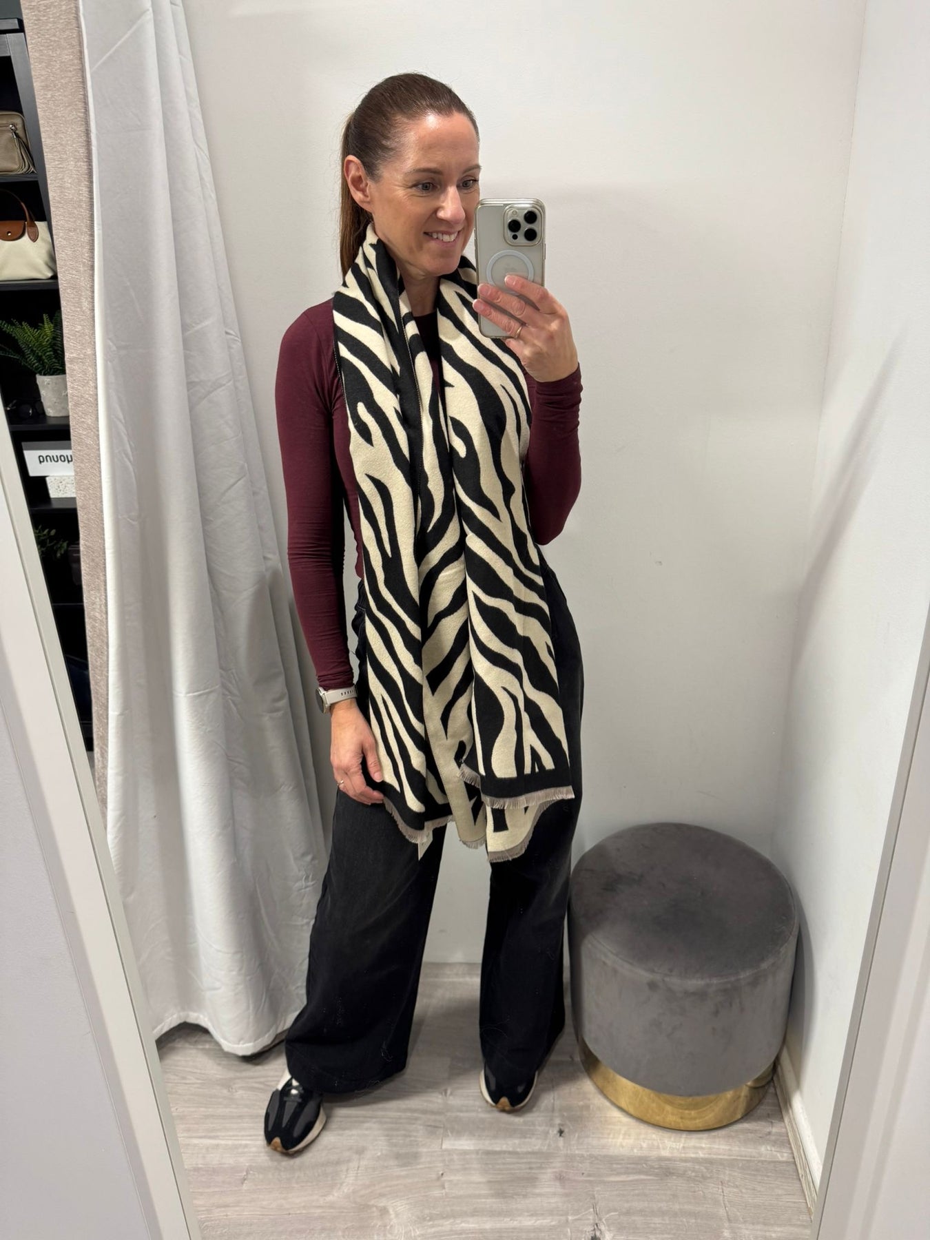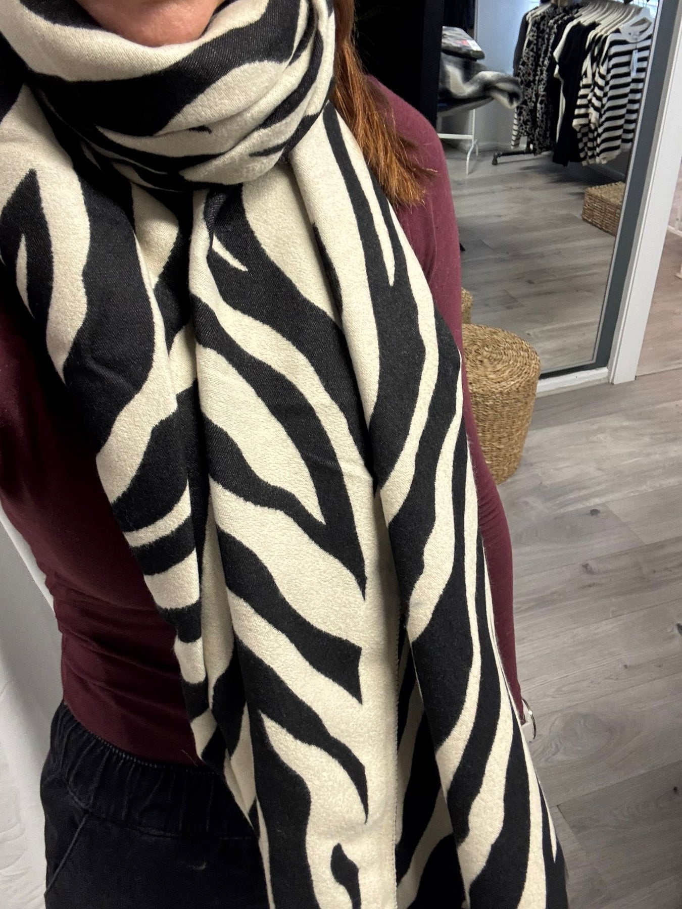 Make a statement with the Vibra Scarf from BYoung. Featuring a chic cream and black zebra print, this super soft and lightweight scarf is finished with a delicate fringe for a subtle, stylish touch.