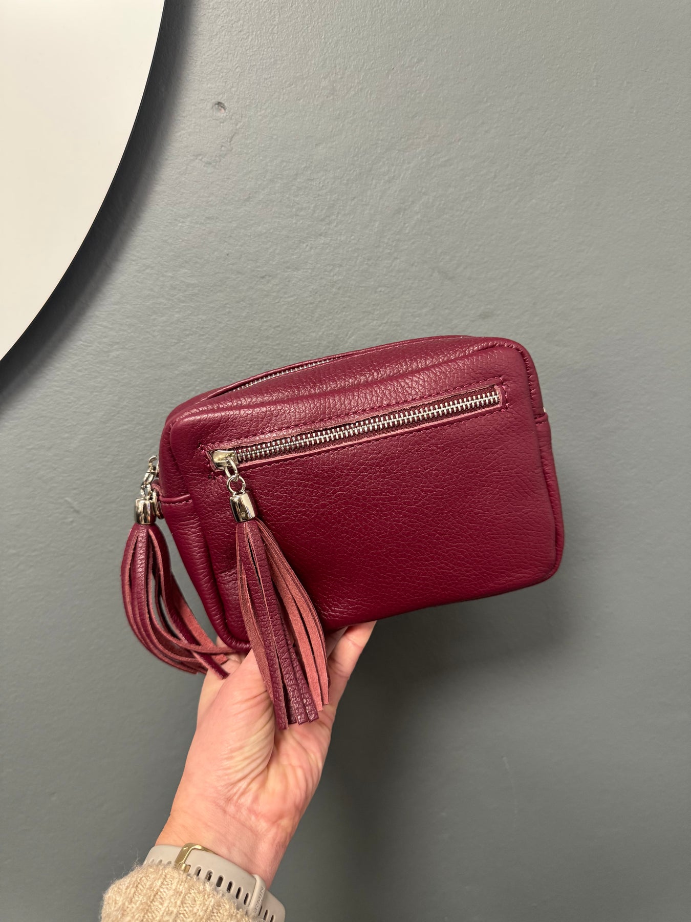 Our staple soft leather camera bag in burgundy. Perfect for day-to-day wear or going out. Featuring an adjustable cross-body shoulder strap which is also removable. Wear it as it is or style it with one of our statement bag straps to switch up the look!