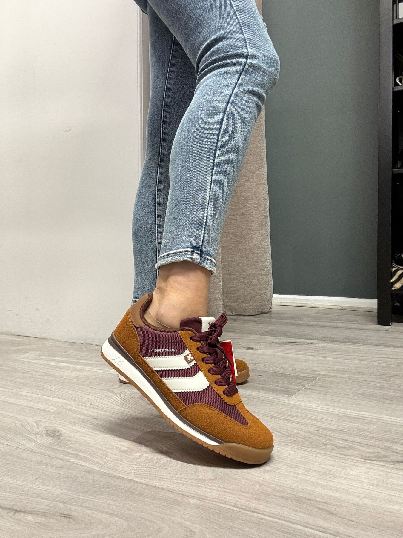 Step into effortless style with the Essie trainers from Xti. Designed in a chic tan and burgundy runner style, these vegan-certified sneakers combine sporty details with everyday practicality.