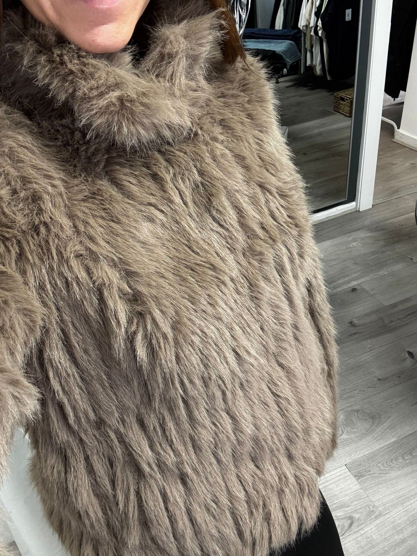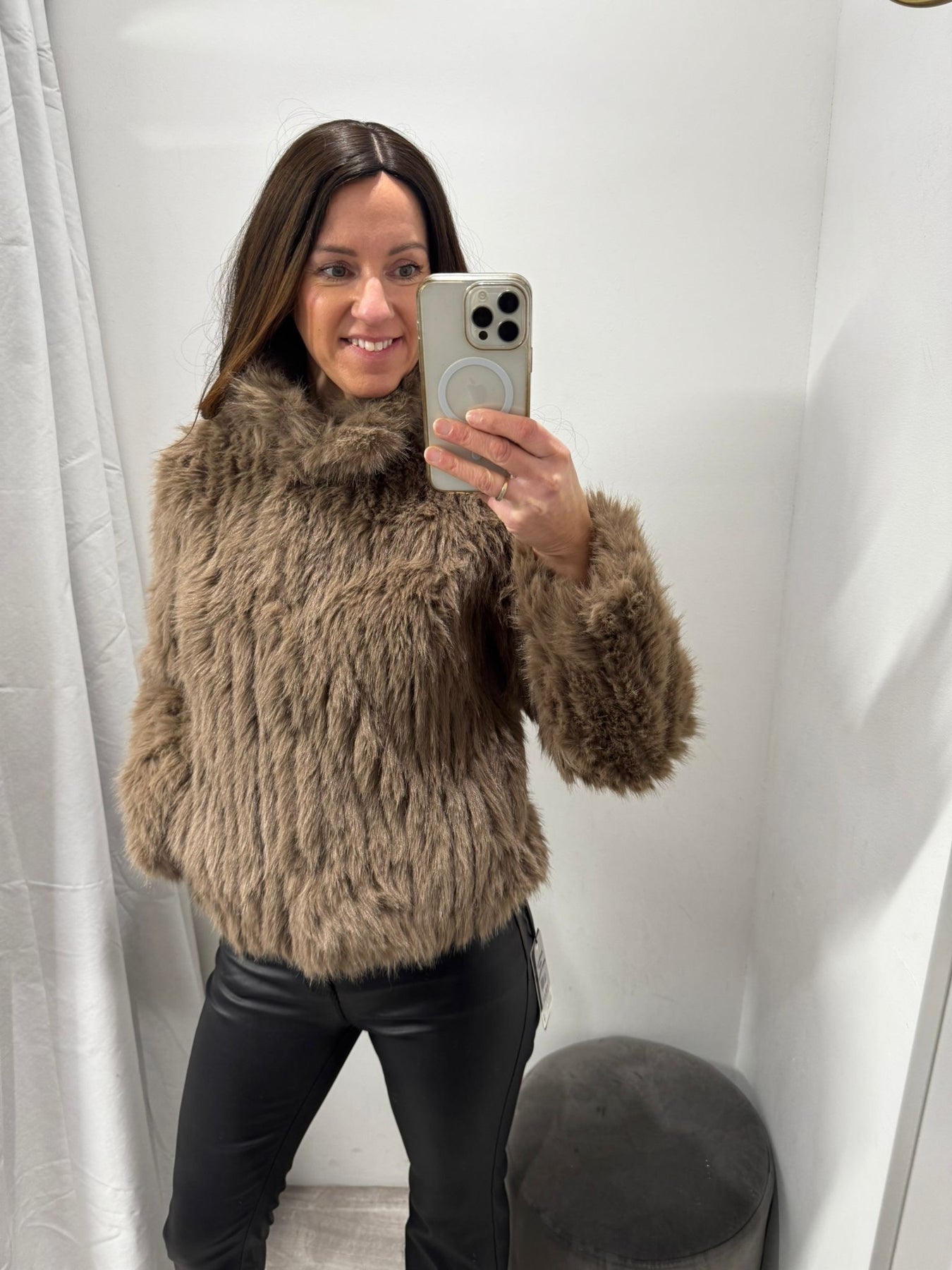 Wrap yourself in pure luxury with our Faith Faux Fur Jacket in a beautiful neutral Toffee colourway. Premium branded from Rino & Pelle, this short faux fur layer adds instant elegance while keeping you cosy through the colder months. Designed with a sleek push-button closure, a chic stand-up collar, and practical side-slit pockets, it blends style with everyday ease. The bold striped design makes a statement and is sure to turn heads day or night.