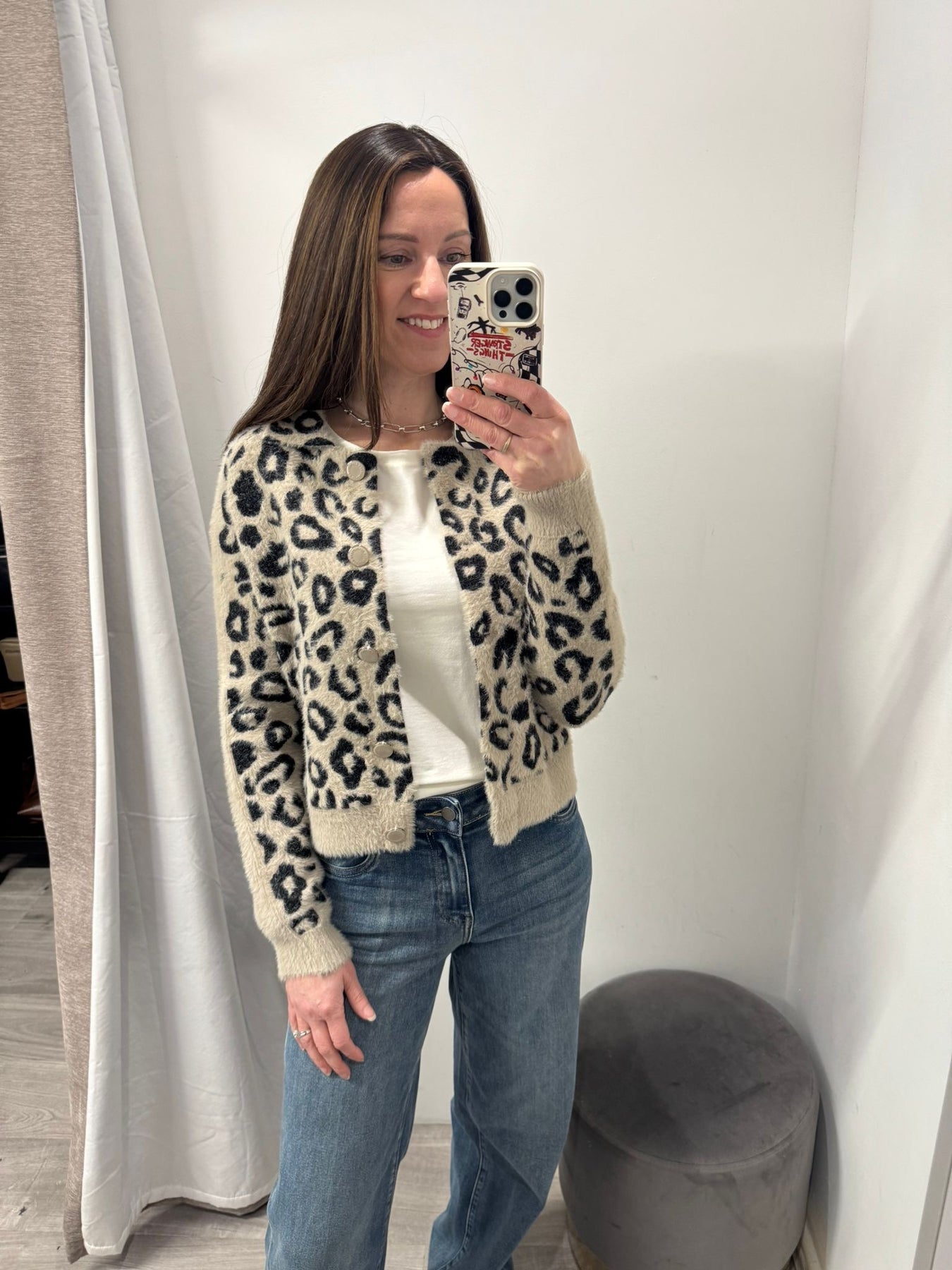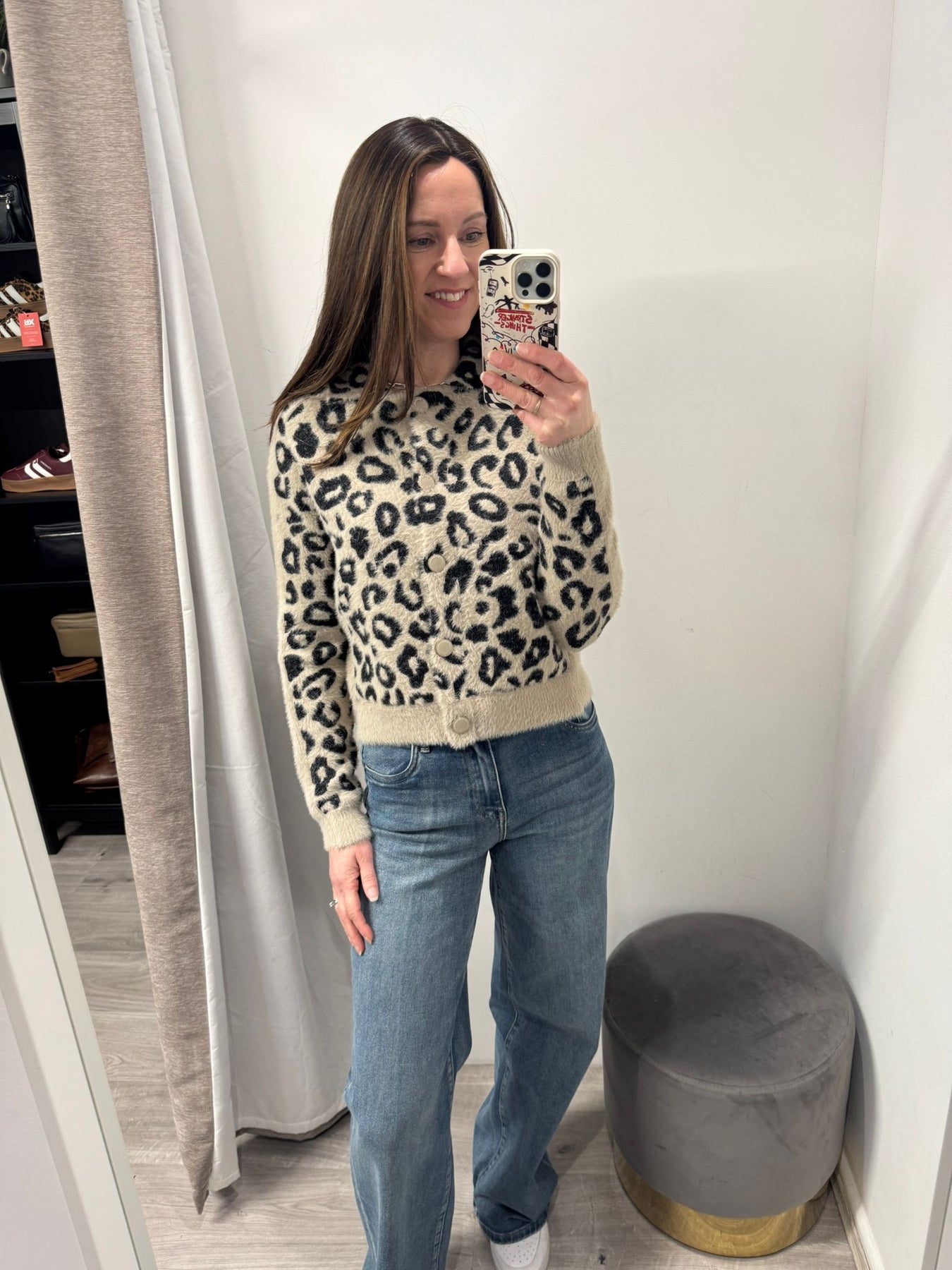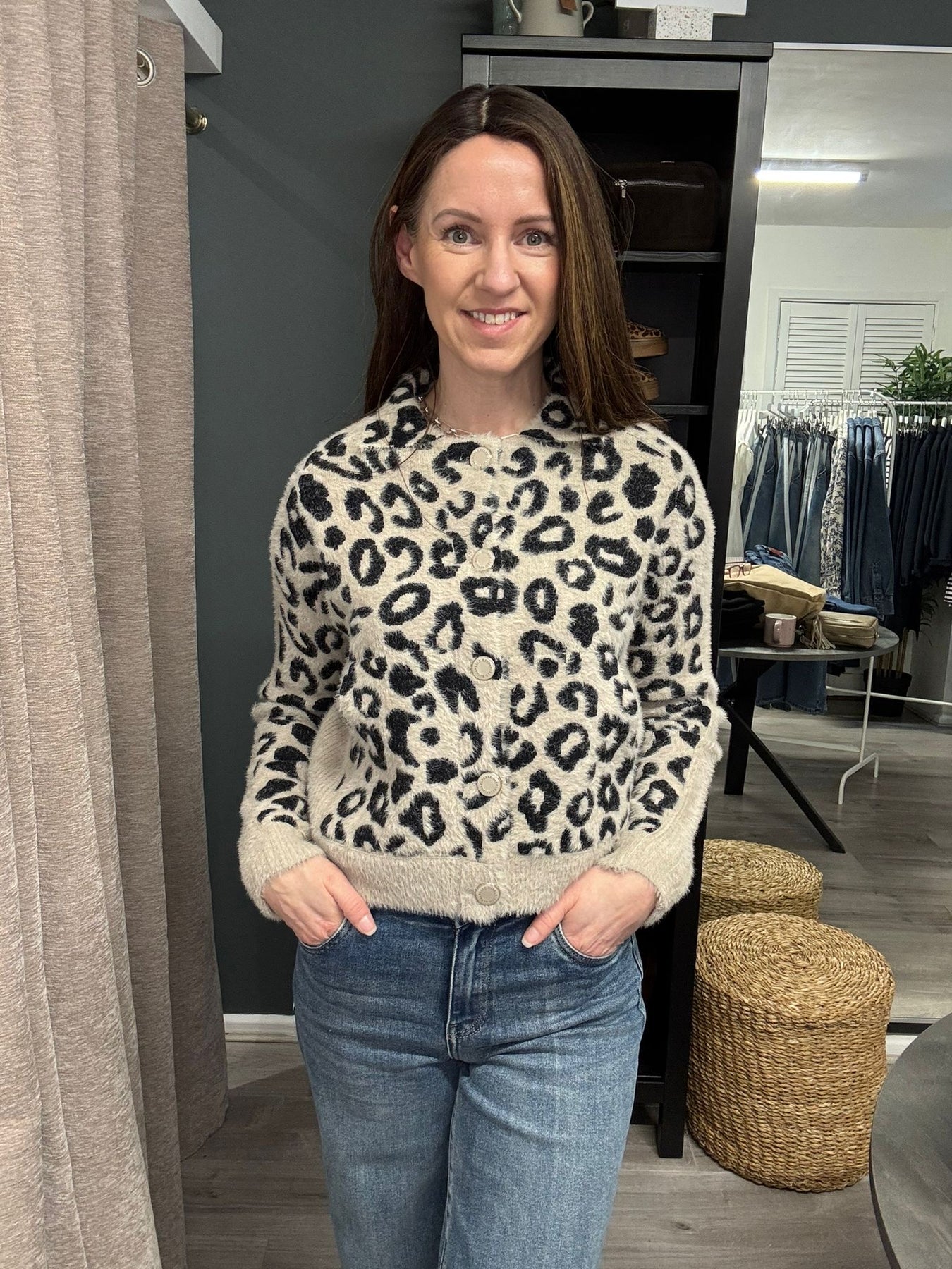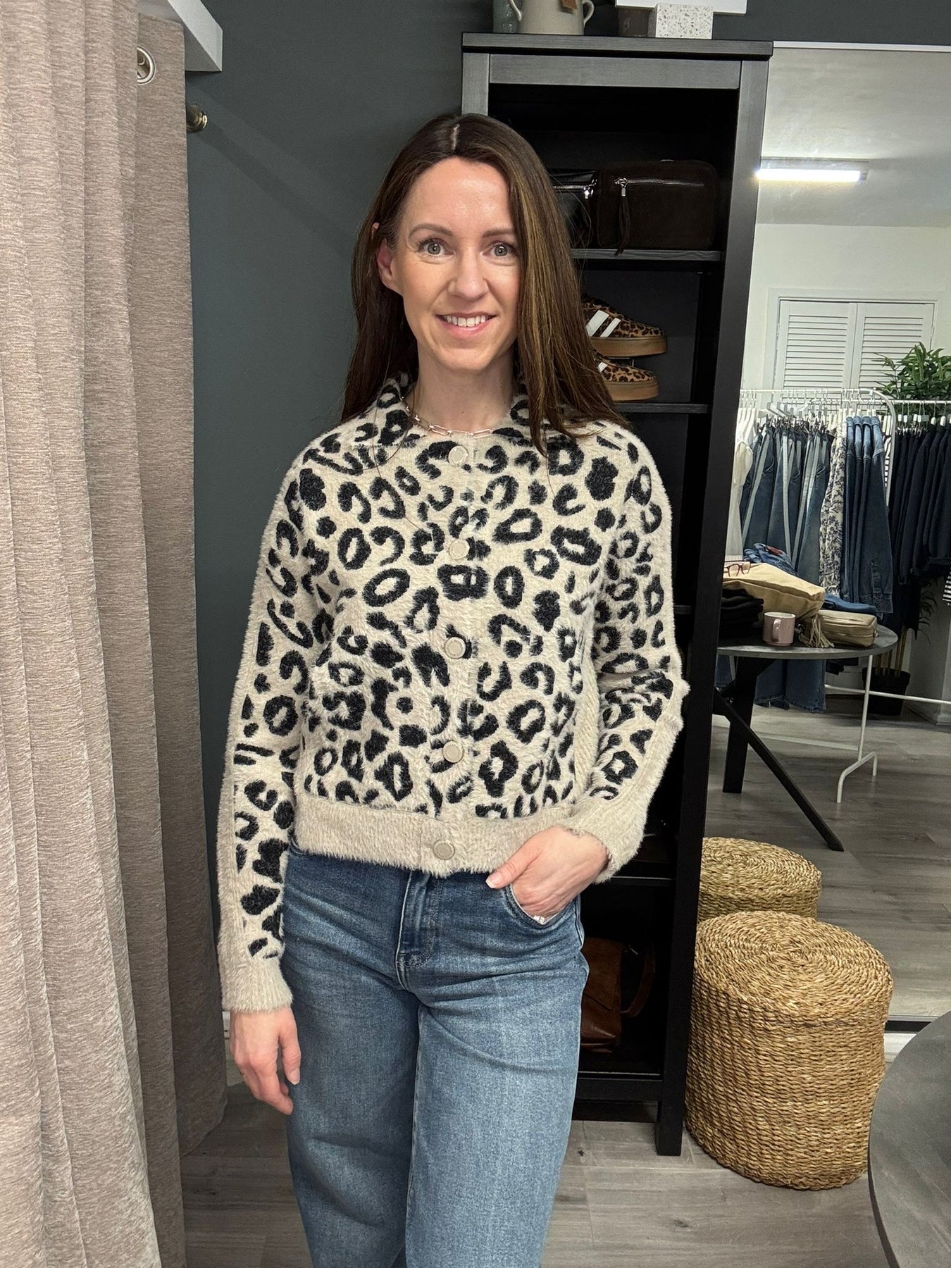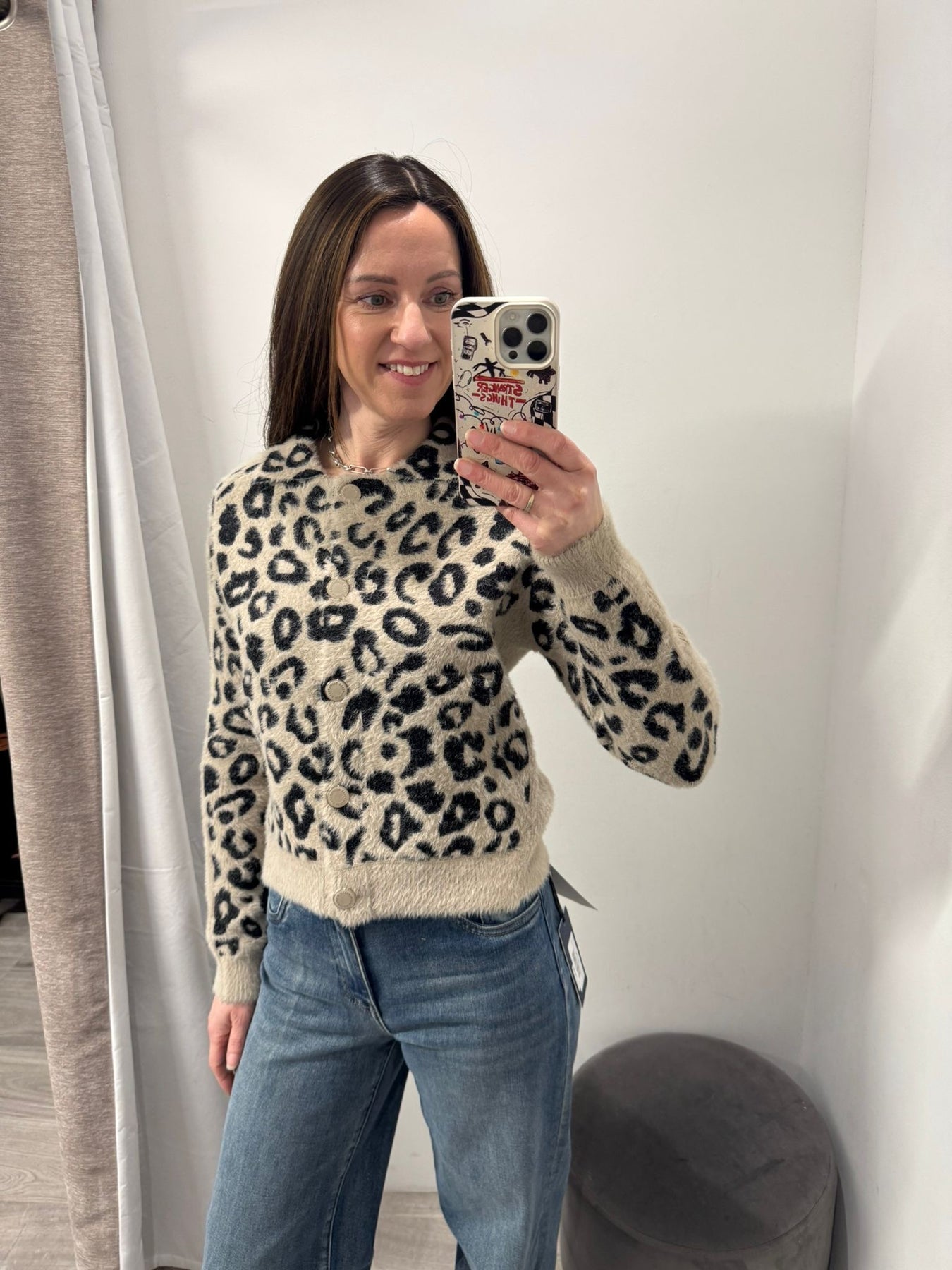Cut in a straight, slightly cropped shape, it’s made from the same plush fabric as our best selling Bubbly jacket. The desert sand beige colour with black leopard print adds a fun, modern twist, making it a standout piece for your wardrobe.