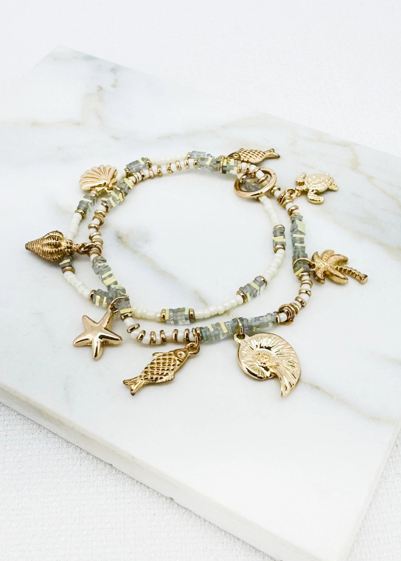 Gold Beaded Double-Layered Bracelet with Sea Charms