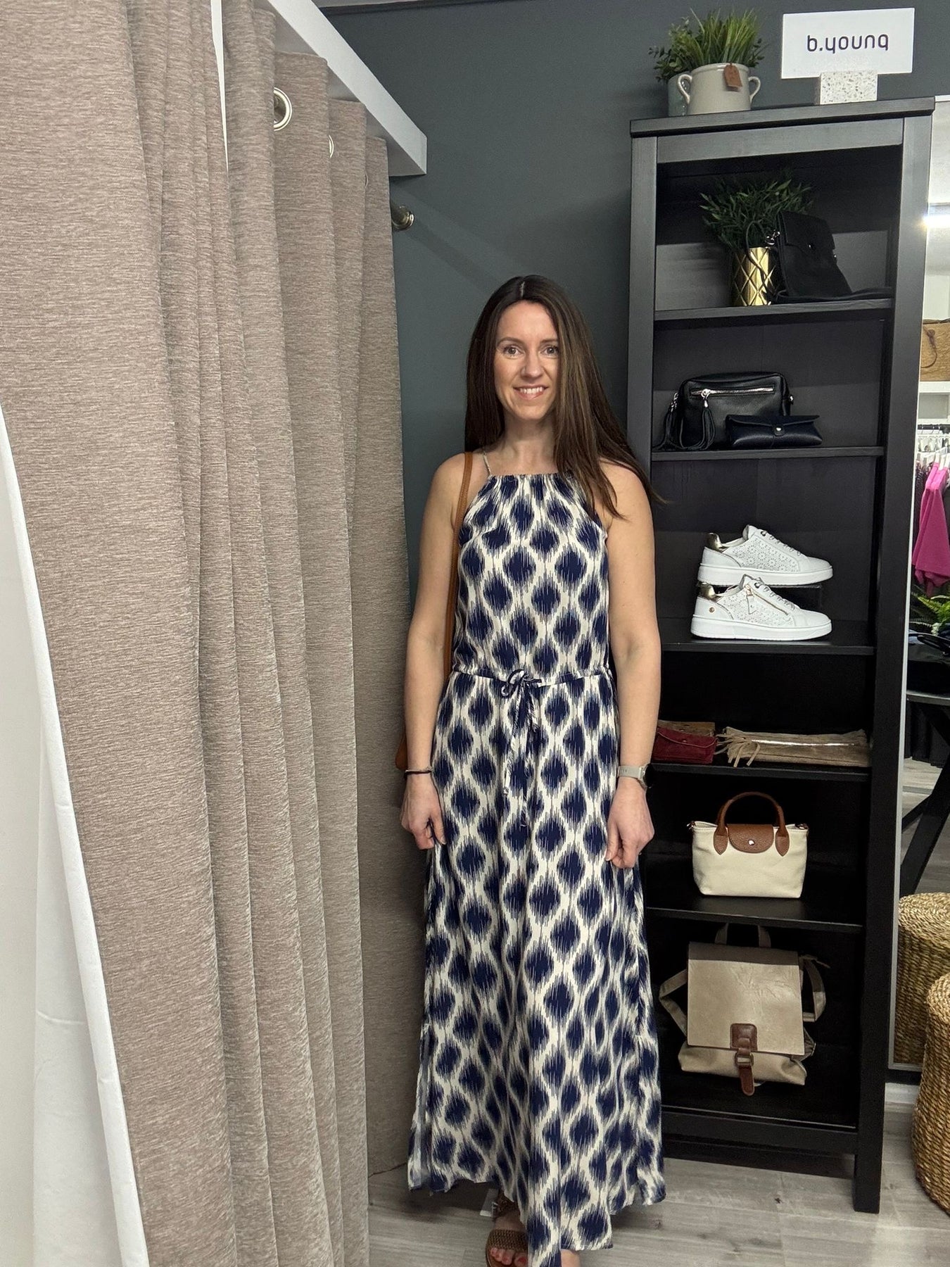 Our Joella Slip Dress in Blue Ikat is a go-to for warm days and holiday dressing. It’s designed in a relaxed, regular fit with a flattering maxi length, plus a tie waist so you can wear it loose and floaty or cinched in for a more defined shape.