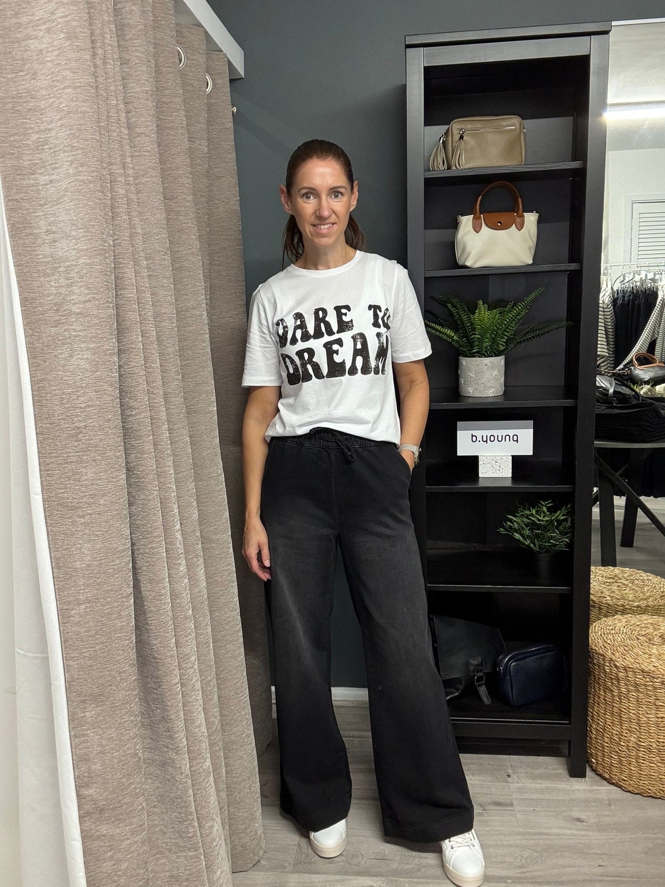 Embrace confidence with the Dream T-shirt from Pulz. In a crisp white hue, this t-shirt offers a clean, fresh look while making a bold statement with the slogan “Dare to Dream” in distressed black text across the front.
