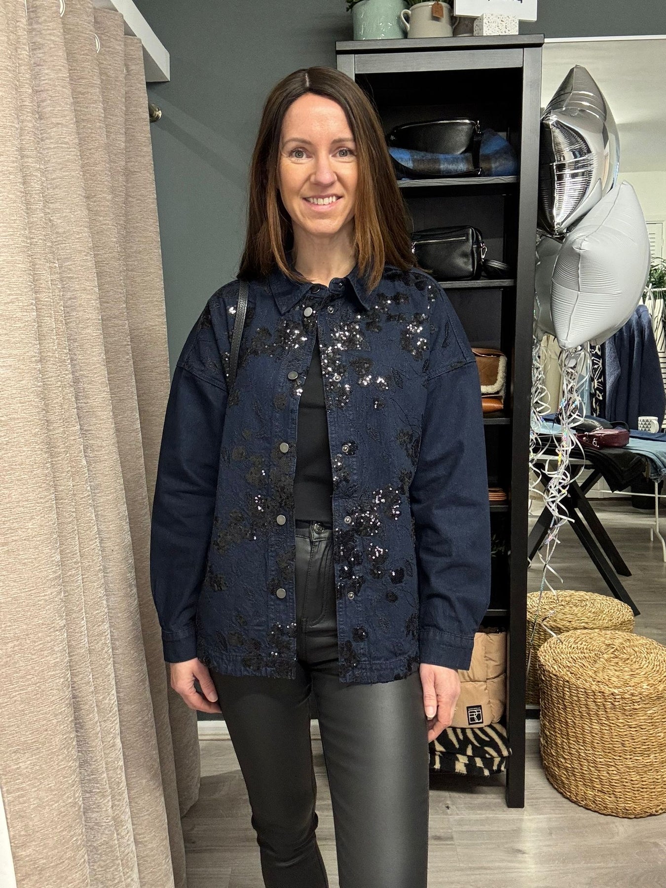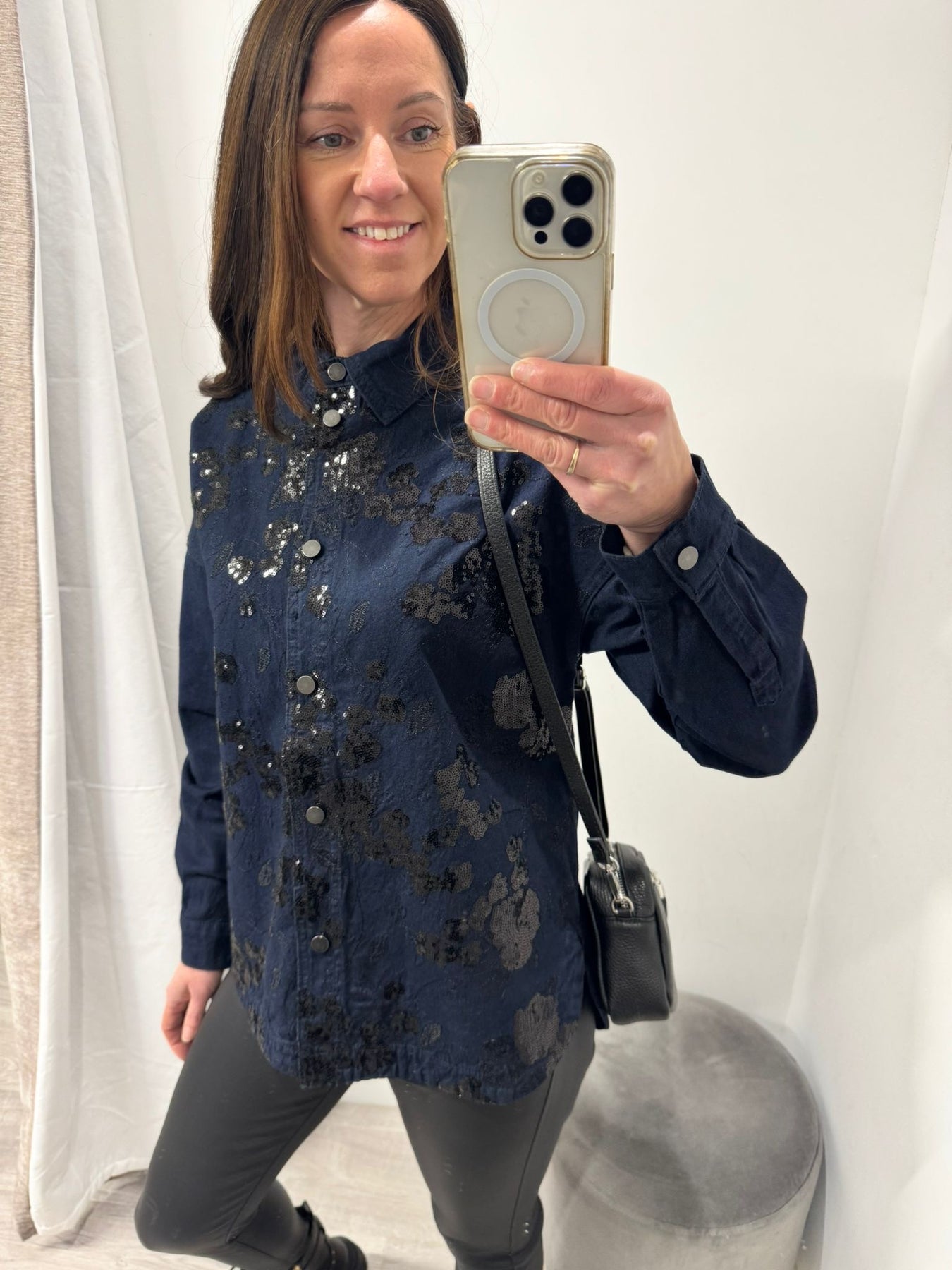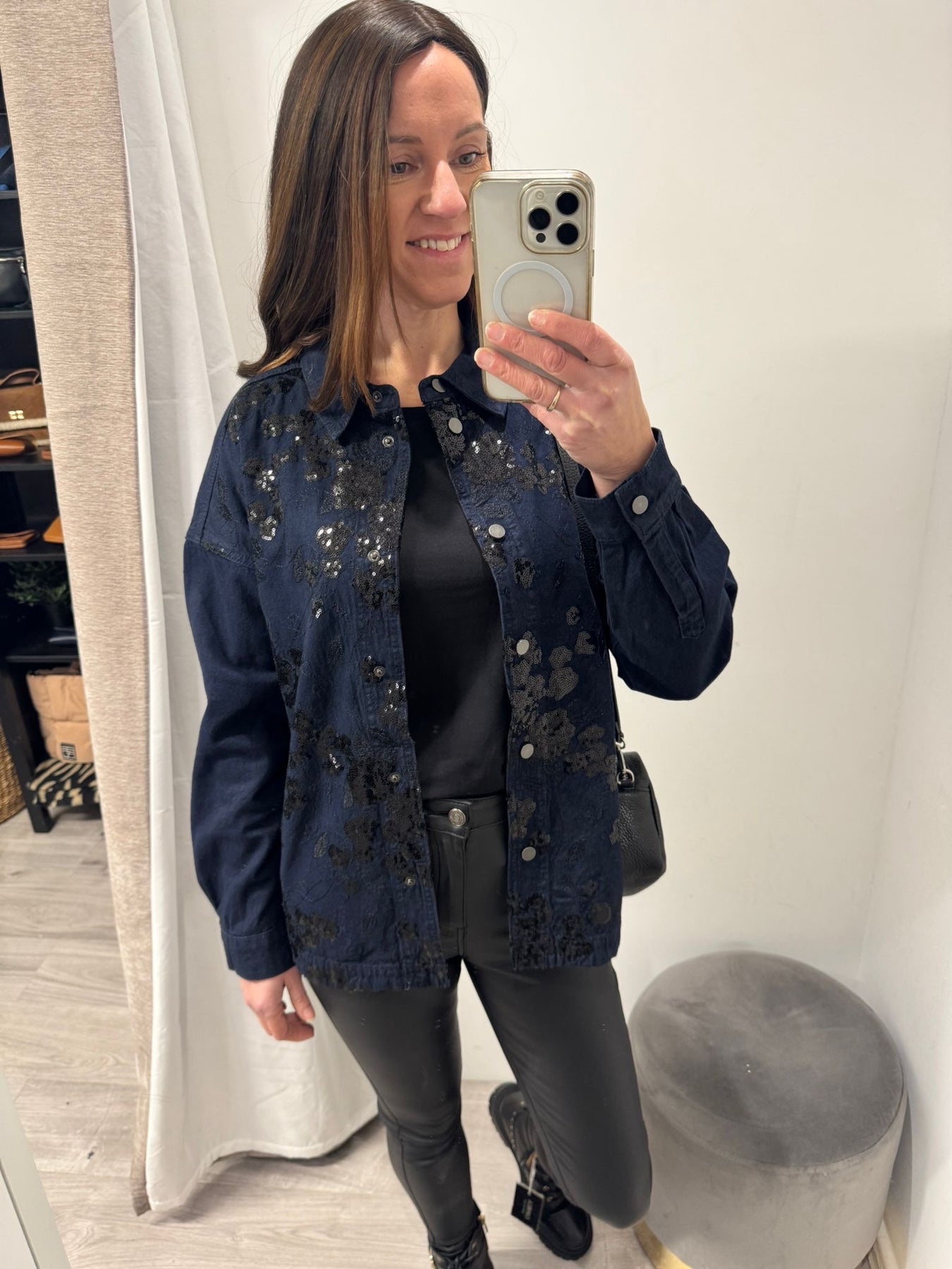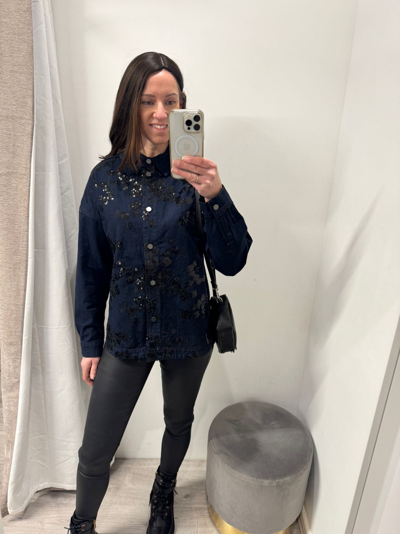 With black sequin accents and delicate floral embroidery, it offers just the right balance of glamour and subtlety. Wear buttoned for a chic standalone look, or layer over a tee for effortless styling. A versatile statement that’s sure to become a go-to favourite.