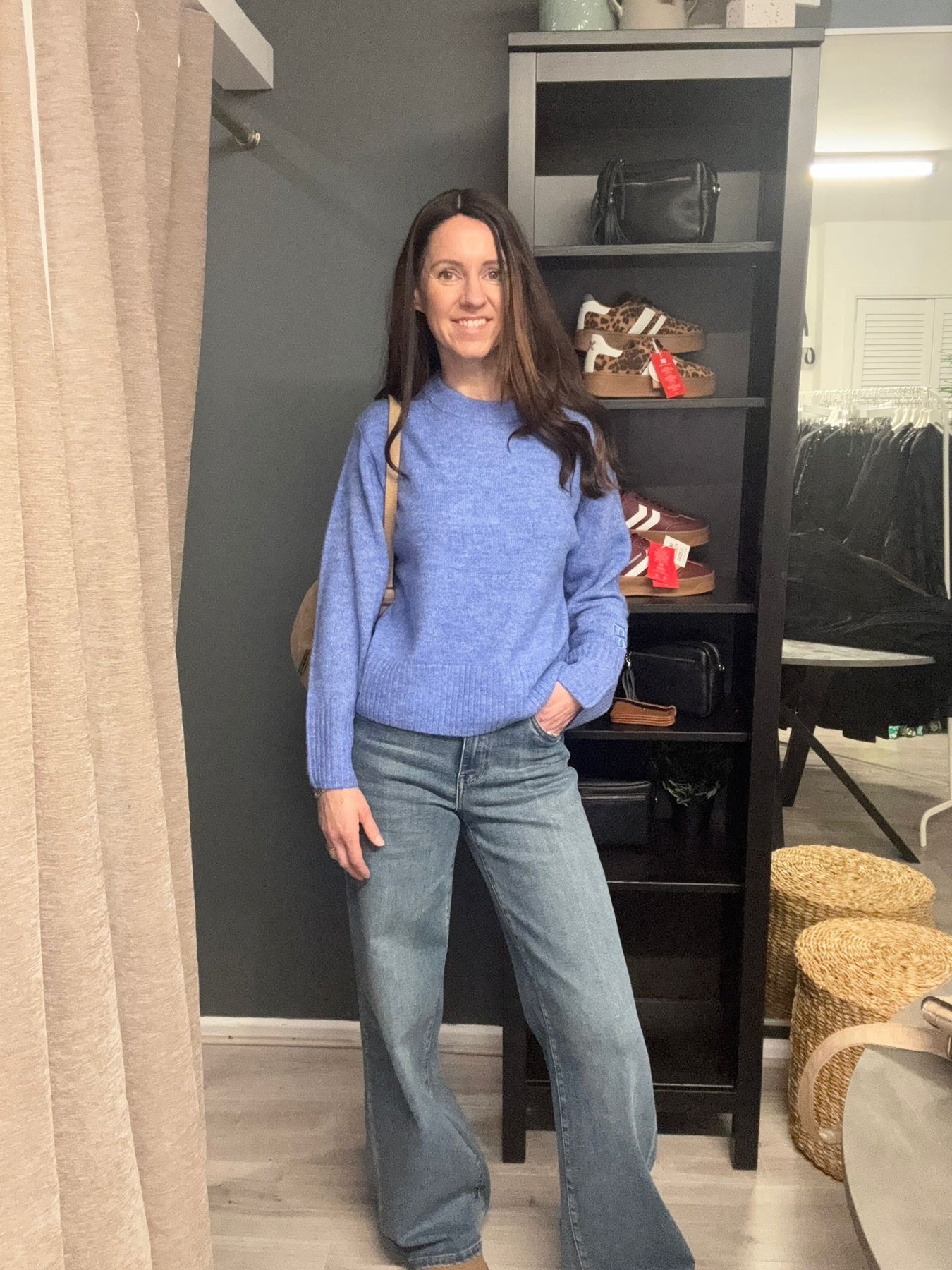 The Baling Jumper from ICHI is an easy, everyday knit you’ll reach for on repeat. Crafted from a super-soft, cosy knit in the cool mid-blue Nebulas Blue colourway, it’s designed with a classic round neckline and a flattering regular fit that’s comfortable without feeling bulky. Finished with a subtle ICHI logo embroidered on the sleeve, it’s effortless, versatile and so easy to style with jeans and trainers or skinny jeans and boots. We’re obsessed.