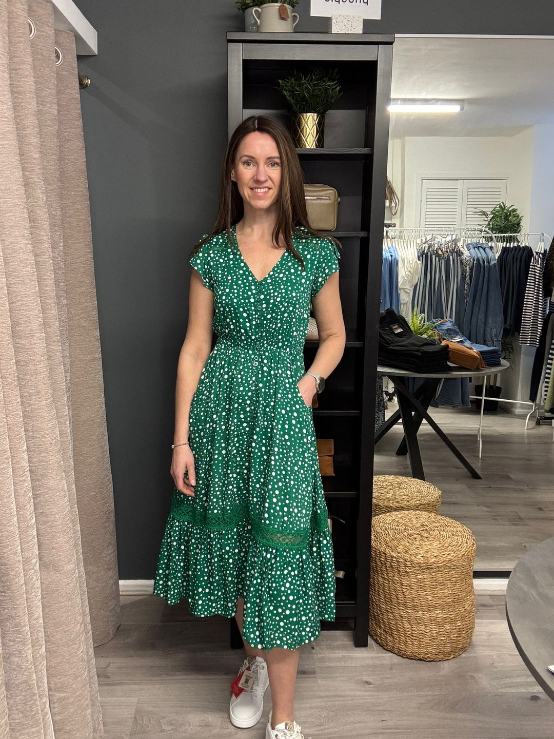 Ciara Midi Dress - Green Polka Dot