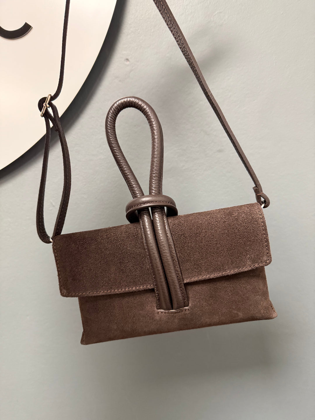 Betty Suede Loop Handle Bag - Chocolate