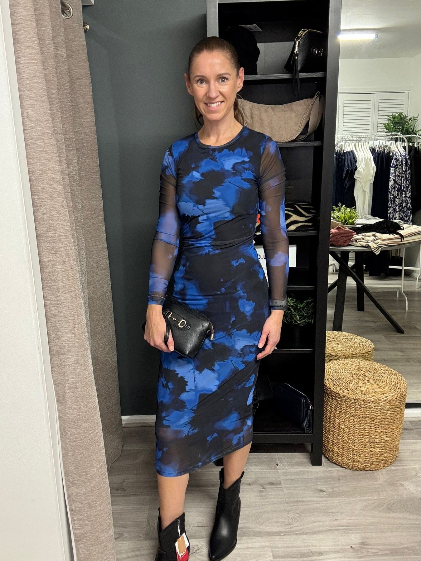 Make a statement this season with the Paloma Dress from premium brand, BYoung. In the striking Soft Clouds colourway, this mesh midi is designed to flatter with a fitted silhouette and just the right amount of stretch. Fully lined for comfort, it features sheer long sleeves and a classic round neckline, adding a touch of effortless elegance.